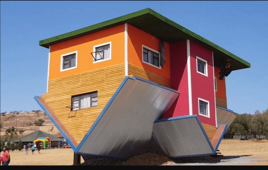 The Upside Down House in Hartbeespoort is part of a global architectural trend where buildings are constructed completely inverted floors become ceilings, furniture hangs overhead, and nothing appears the “right way up.”